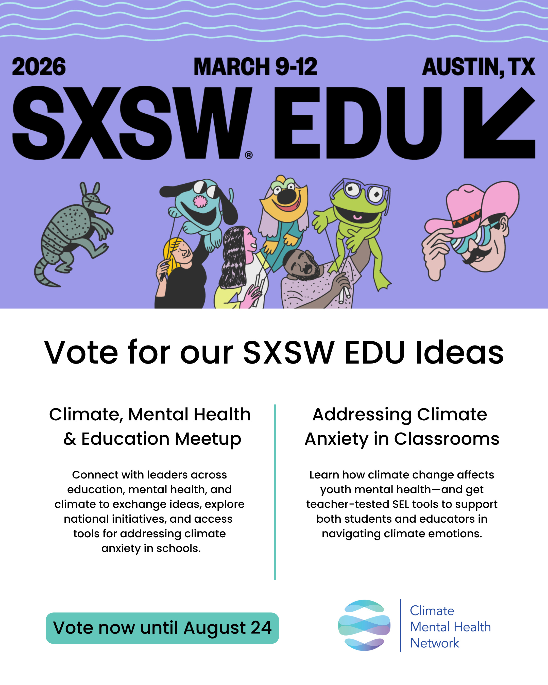 Vote for Climate Mental Health Network’s panels at SXSW Edu! Voting is open now.